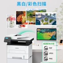 扫描功能:平板式+馈纸式; 基础功能:复印,扫描,传真,打印; 能效等级:二级能效;